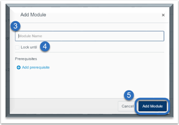 - Set Prerequisites to control what modules must be completed before moving on to the next module.
